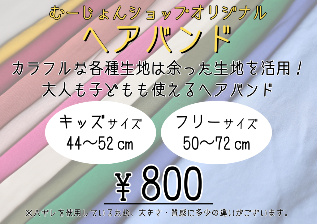 むーじょんショップのオリジナル商品に新商品が追加されました👏 今回の商品は余った生地(ハギレ)や洋服としては販売できない自社製品の一部を利用し長年、縫製を続けたスタッフのアイデアで作成されるほぼ1点モノのヘアバンドや小物商品になります✨ 様々なアイテムが店頭にて販売しております🛒在庫の問い合わせ等、対応いたします📥お気軽お問い合わせからご連絡ください🙇 お買い物前にお客様にお知らせ。